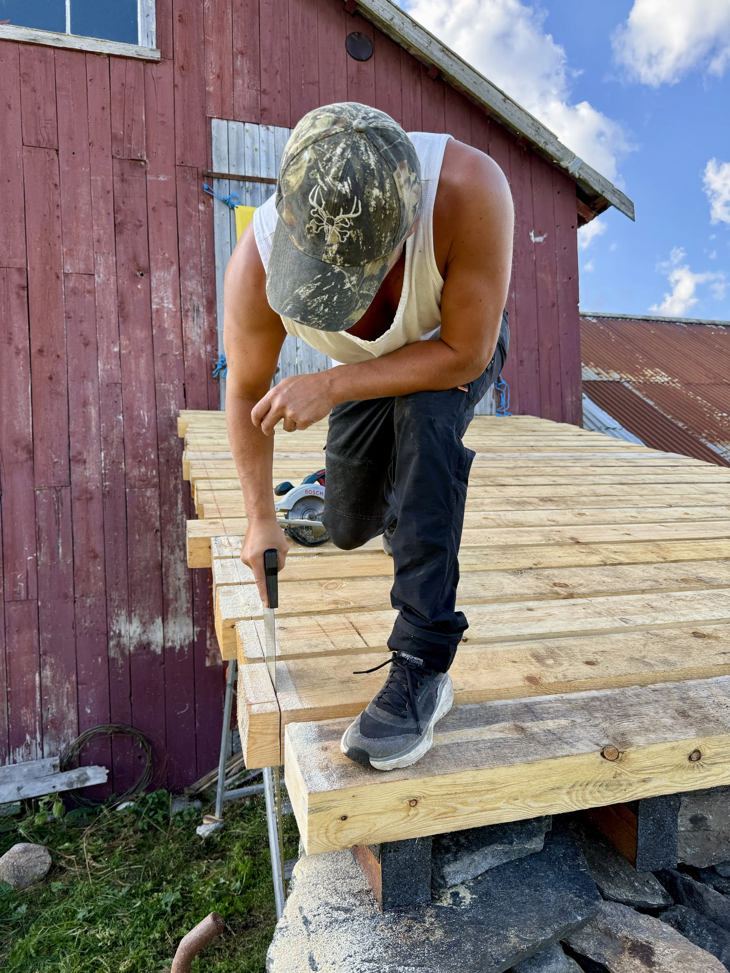 Med god hjelp av min gode nabo Olav Hilmarsen, en særdeles dyktig tømrer, bistod jeg selv i arbeidet med å gjenreise låvebrua i august/september 2025. Det var utrolig givende å kunne bidra i arbeidet selv – å takle tunge løft og få ny lærdom gir god mestringsfølelse!